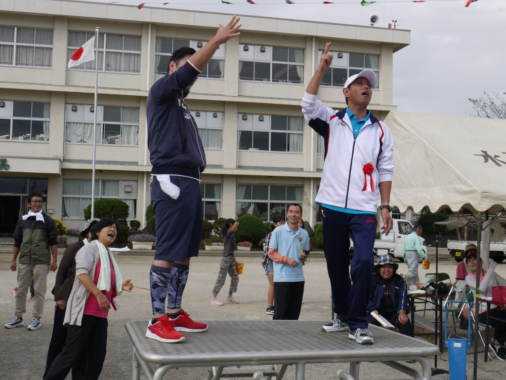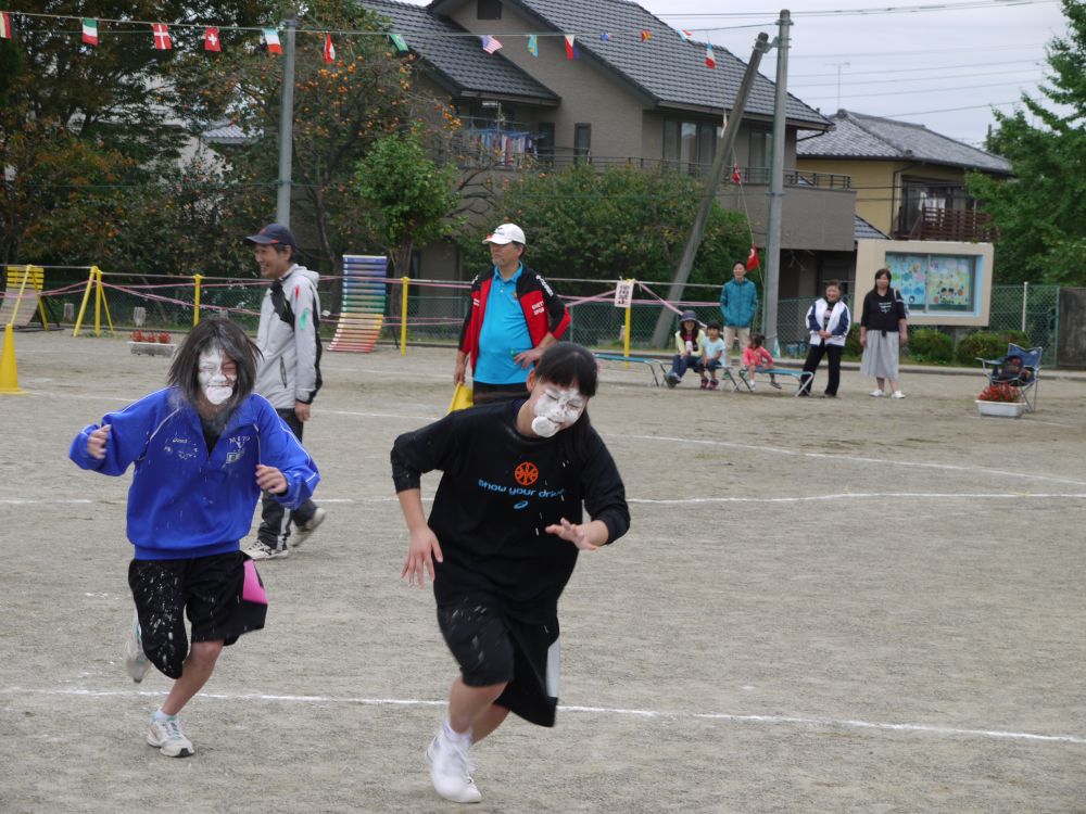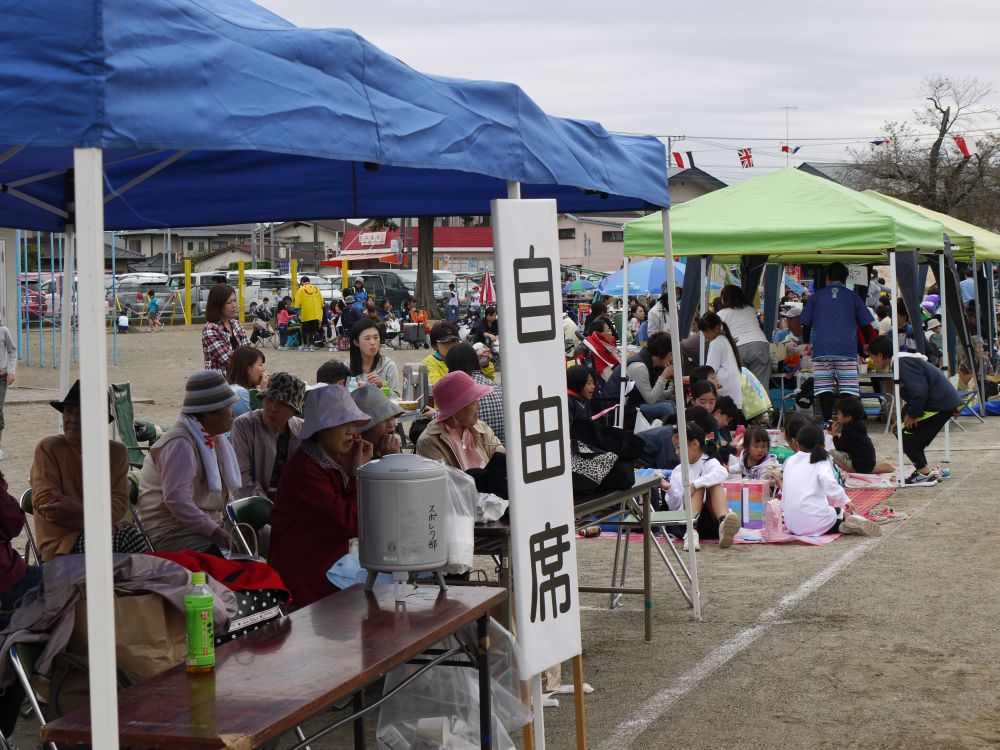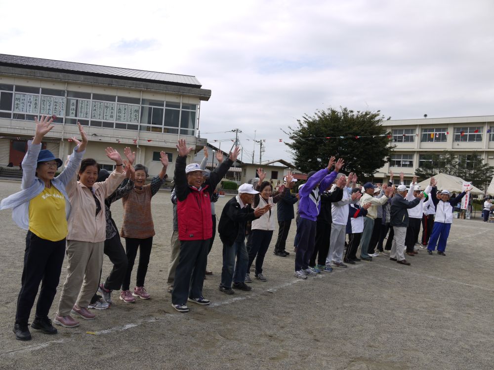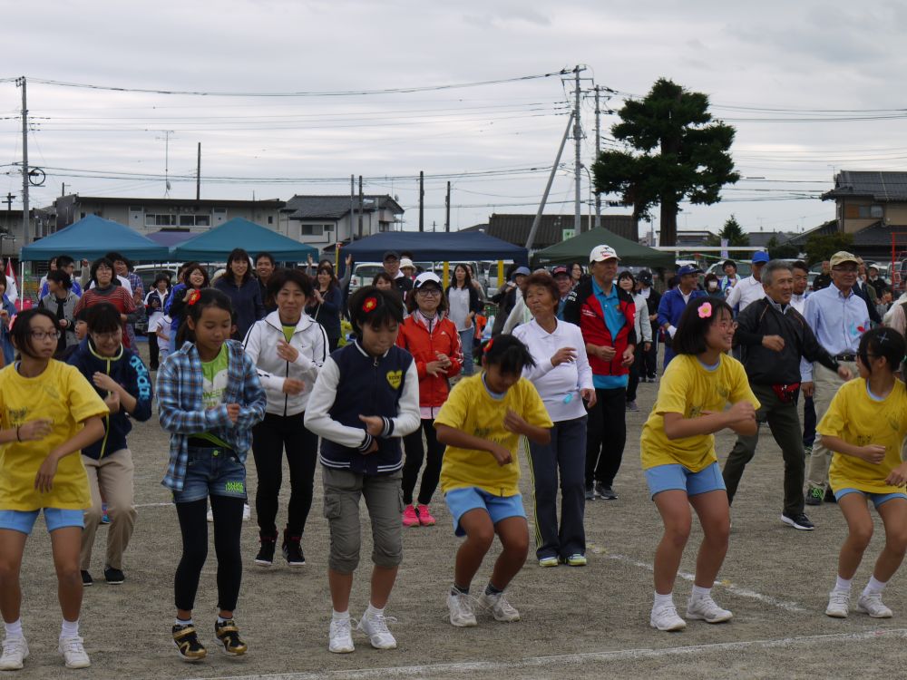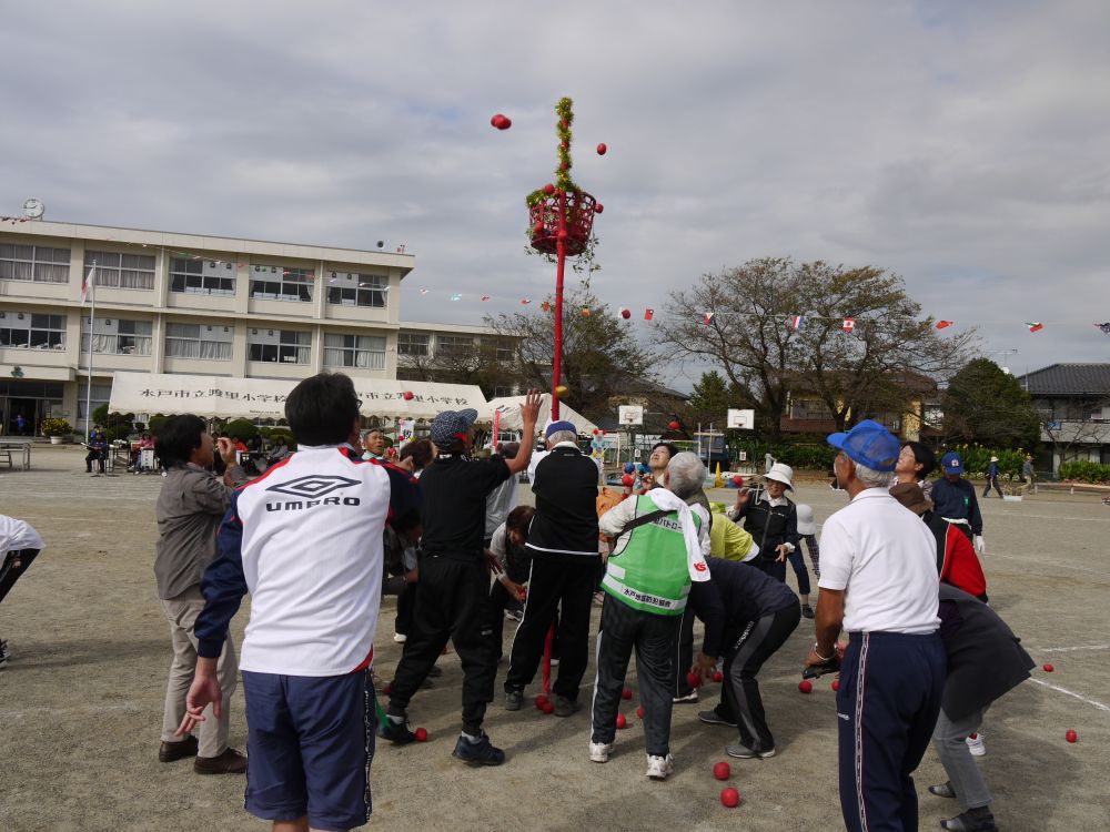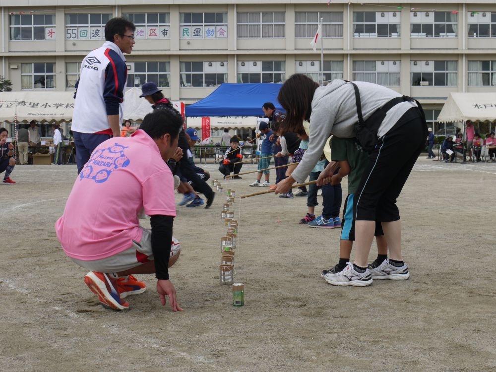 第55回水戸市体育祭 渡里地区市民運動会が雨で一日順延され、体育の日の10日9時より無事開催されました。開会式後に準備体操を行ってから、プログラム1番のくぐって・まわって(小学生3・4年の男女)がスタートしました。午前中は9つのプログラムを行い、昼休みとなりました。昼休み中に花壇コンクールの表彰や金管バンドの演奏、更に高齢者クラブのメンバーによる踊りが披露され、最後に勇壮な「渡里ふれあい太鼓」の演奏を聴くことが出来ました。午後からはプログラム10番のみんなで「みとちゃん」ダンスを全員で踊り、続いて紅白玉入れや親子でつったゾォー、お色直しなど7つのプログラムが組み込まれました。すべてのプログラム終了後に閉会式を行い、楽しかった一日を終えて無事解散となりました。参加者たちはそれぞれの景品を手に、満足そうな笑顔で家路につきました。